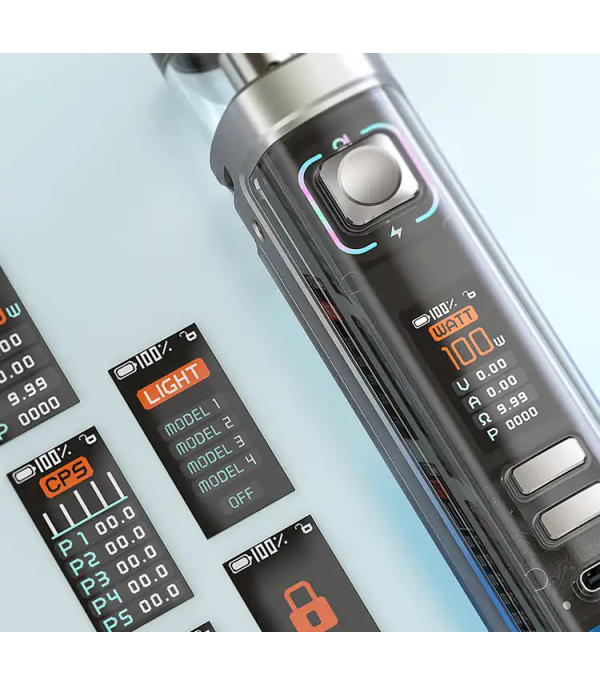 • Çoklu mod seçenekleri: AUTO, WATT, VOLTAGE, BYPASS, TC ve CPS modları ile özelleştirilebilir vaping deneyimi.