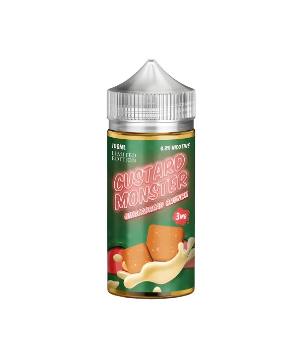 Custard Monster NTD Gingerbread Crunch Custard E-Likit, baharatlı zencefilli kurabiye aromasıyla kremalı custard lezzetini buluşturur. 100 mL, 75VG/25PG oranı, 0/3/6 mg nikotin seçenekleri.