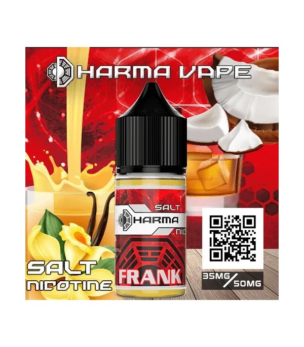 Dharma Frank Salt Likit, viski, hindistan cevizi, bal, Irish kreması ve vanilya aromalarıyla zengin bir tat deneyimi sunar. 30 ml şişe ve 35 / 50 mg nikotin seçenekleri ile pod mod cihazlarla uyumludur. Tatlı, kremalı ve aromatik yoğun içim isteyen kullanıcılar için ideal, dengeli ve ferahlatıcı bir salt likit deneyimi sağlar.