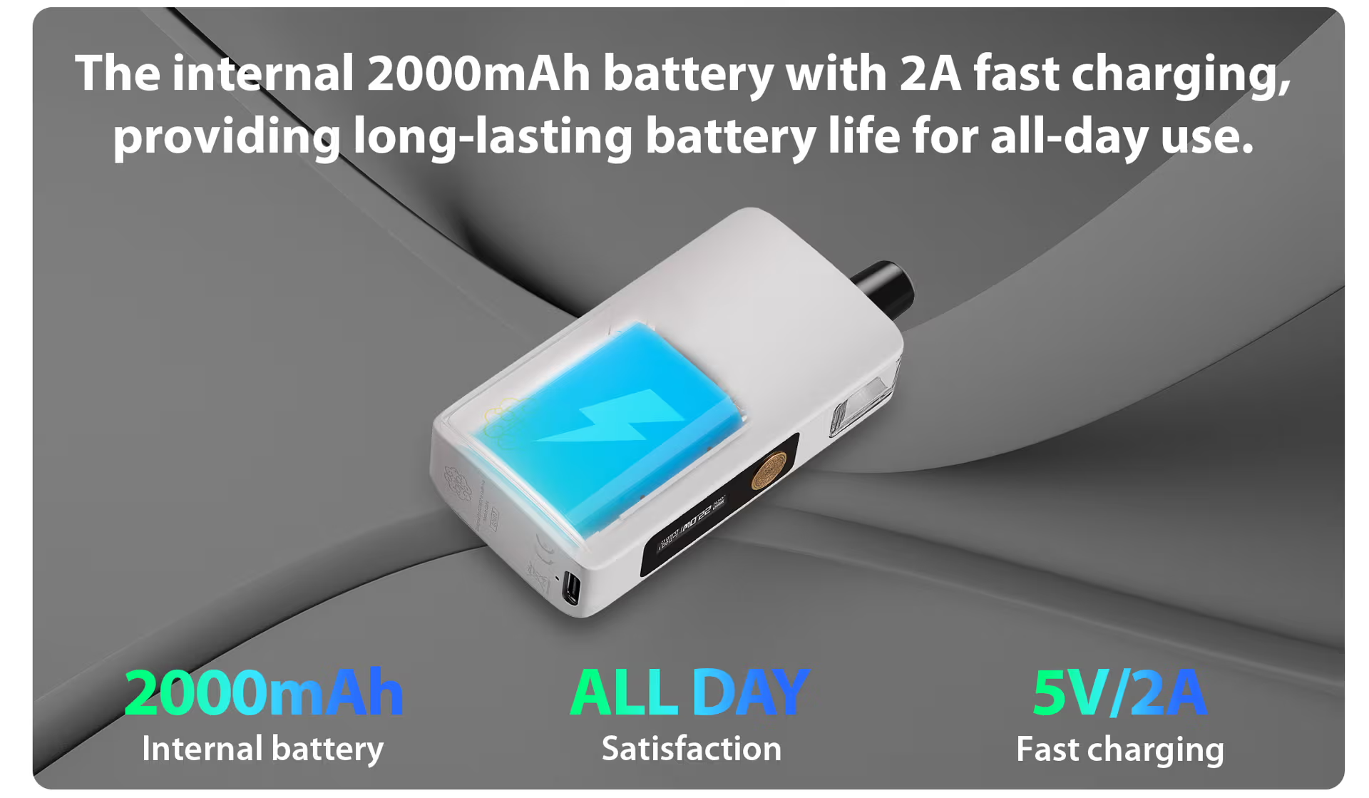 • Geniş güç aralığı ve yüksek çıkış gücü ile hem aroma hem buhar isteyenlere hitap eder.