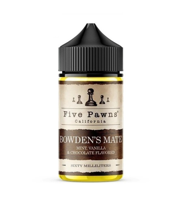 Five Pawns Bowden's Mate, kimsenini hayır diyemeyeceği iddialı bir e-likit olarak karşınızda. Çikolatanın baştan çıkartıcı lezzetini daha da güçlendiren Fransız vanilyasının etkisi Five Pawns Bowden's Mate' i benzerlerinden tamamen ayıran bir e-likit haline getiriyor. Alt notalardan gelen taze nane ferahlığı ile gün boyu sıkılmadan kullanabileceğiniz Five Pawns Bowden's Mate ile elektronik sigaranızdan bir an bile ayrılmak istemeyeceksiniz.