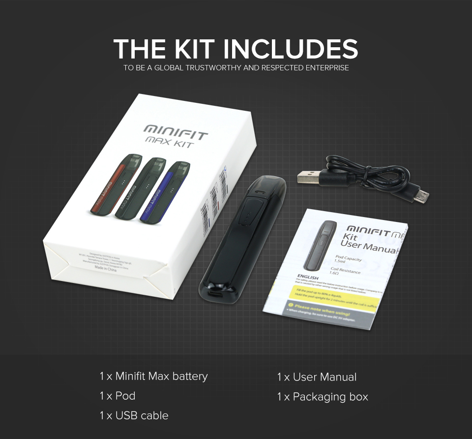 650mAh bataryası, MicroUSB portu üzerinden hızlı bir şekilde şarj edilebilir ve cihazın uzun süre dayanmasına olanak tanır. Minifit Max’in gelişmiş güvenlik özellikleri arasında kısa devre koruması, aşırı ısınma koruması ve düşük voltaj koruması bulunur, bu da kullanıcılara güvenli bir içim deneyimi sunar.