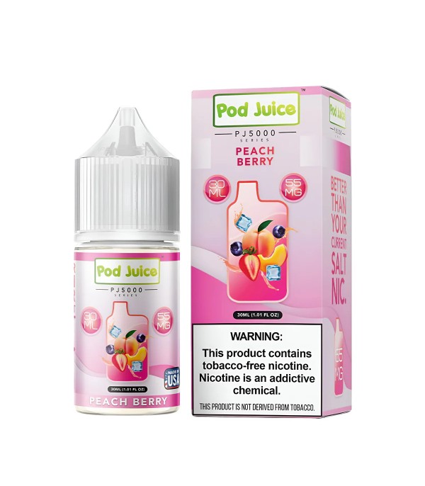 Pod Juice PJ5000 Peach Berry Salt Likit, olgun şeftali ve tatlı orman meyvelerinin uyumunu sunan meyvemsi, ferah ve dengeli bir elektronik sigara likitidir. 50VG / 50PG oranı sayesinde pürüzsüz içim ve güçlü aroma performansı sağlar. 30 mL şişede; 35 mg ve 55 mg nikotin seçenekleriyle üretilmiştir.