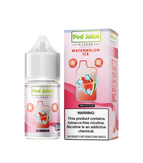 Pod Juice PJ5000 Watermelon Ice Salt Likit, karpuzun tatlı ve sulu aromasını buzlu ferahlıkla buluşturan serinletici bir elektronik sigara likitidir. 50VG / 50PG oranı sayesinde pürüzsüz içim ve dengeli aroma performansı sağlar. 30 mL şişede; 35 mg ve 55 mg nikotin seçenekleriyle üretilmiştir.