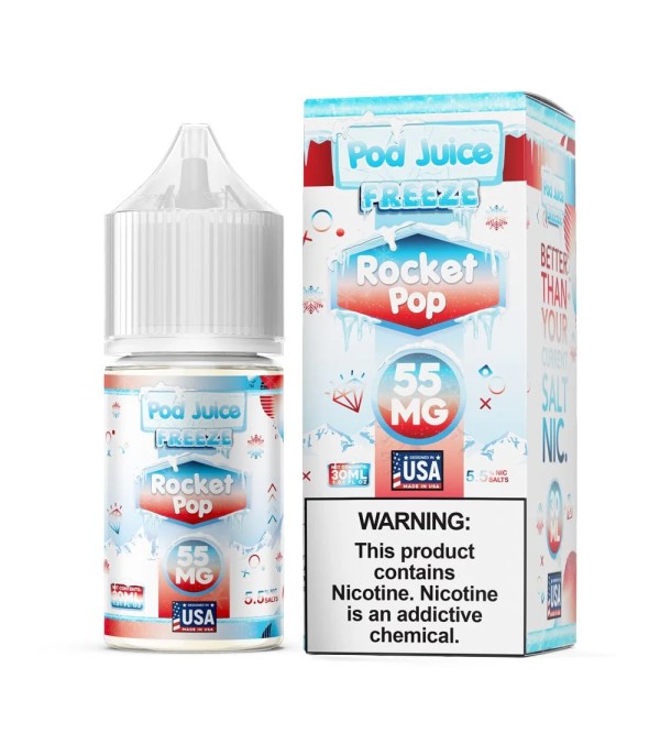 Pod Juice Rocket Pop, kiraz, limon ve mavi ahududu aromalarının birleşimiyle buzlu, tatlı ve ferah bir yaz lezzeti sunan elektronik sigara likitidir. 70VG / 30PG oranı sayesinde yoğun buhar ve net aroma dengesi sağlar. 100 mL şişede; 0 mg, 3 mg ve 6 mg nikotin seçenekleriyle üretilmiştir.
