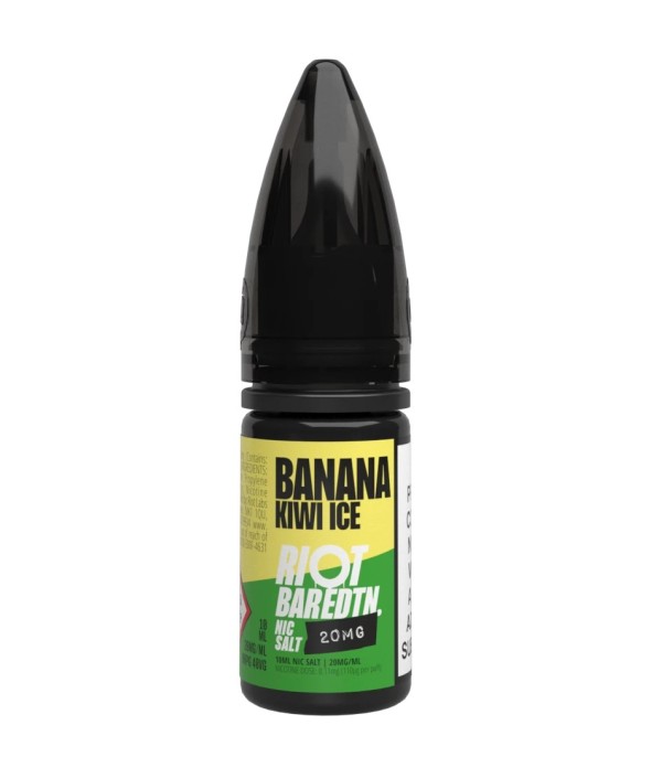 Riot Banana Kiwi Ice 10ml: Muz, kivi ve mentol aromalarıyla ferah ve pürüzsüz elektronik sigara likiti deneyimi.