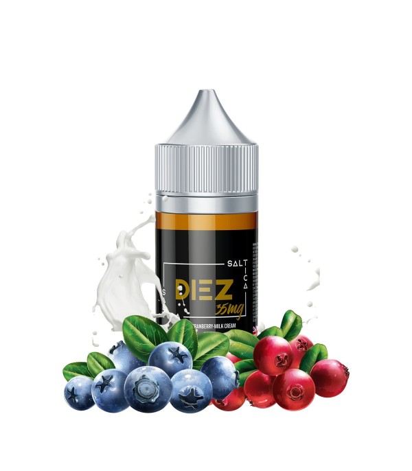 Saltica Diez Salt Likit ile kızılcık, yaban mersini ve sütün mükemmel uyumunu keşfedin. İdeal PG/VG oranıyla doyurucu bir elektronik sigara deneyimi sunar.
