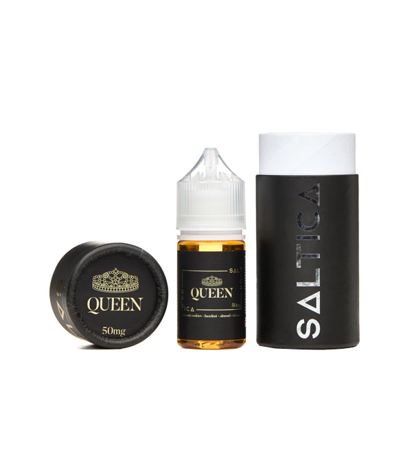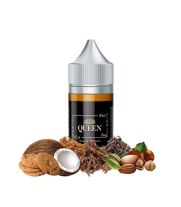 Saltica Queen Salt Likit: Tütün, Hindistan Cevizi, Badem ve Fındık aromalarıyla zenginleşen özel içim. Elektronik sigara keyfini lezzetle buluşturun!