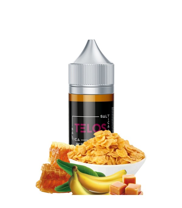 Saltica Telos Salt Likit: Mısır gevreği, muz, karamel ve balın muhteşem karışımıyla özel bir aroma deneyimi. Tatlı ve doyurucu elektronik sigara keyfi sizi bekliyor!
