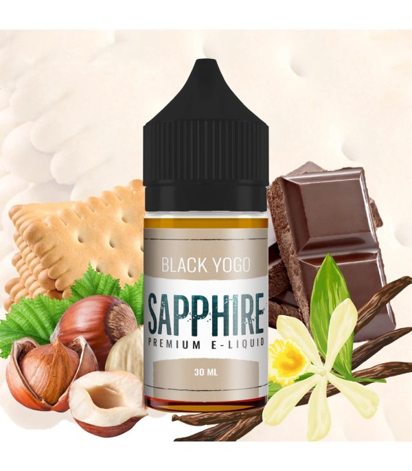 Sapphire Black Yogo Salt Likit, çikolata, vanilya, bisküvi ve fındık aromalarını bir araya getiren zengin ve tatlı yapılı bir likittir. Nikotin tuzu teknolojisi sayesinde pürüzsüz içim ve dengeli boğaz vurumu sunar.