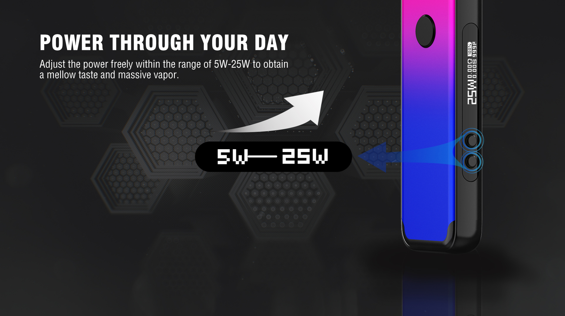 Smok Acro Pod Mod, maksimum 25W çıkış gücü ile ideal bir kullanım deneyimi sunar.