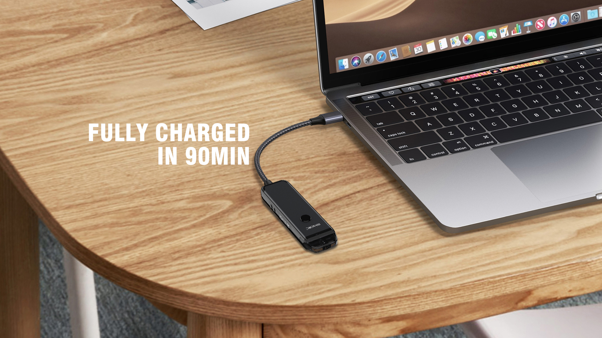 Hızlı Şarj: USB Type-C bağlantısı sayesinde cihaz 90 dakika içinde tamamen şarj edilebilir.