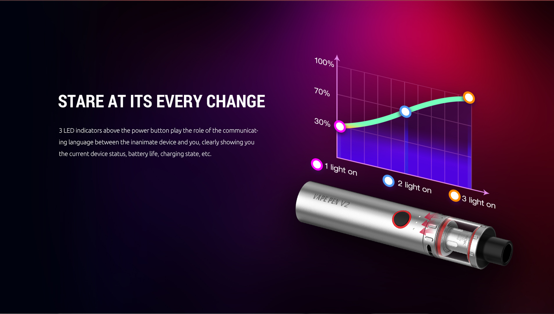 SMOK Vape Pen serisinin en yeni kalem tarzı elektronik sigarası olan SMOK Vape Pen V2 Başlangıç ​​Kiti, taşınabilir ve ergonomik tasarıma sahip all-in-one kalem tarzı bir başlangıç kitidir. Vape Pen V2, optimum lezzet ve büyük bulutlar için Seramik yeni Vape Pen Meshed 0.15 Ohm coil ile birlikte gelir. Maksimum 60W'lık doğrudan çıkışla birlikte, SMOK Vape Pen V2 size birden fazla korumayla istikrarlı ve etkileyici bir vaping deneyimi sunar. Ayrıca, işlemi basitleştirmek için kullanılan tek bir ateşleme düğmesi bulunmaktadır. Kompakt ve taşınabilir olmasıyla harika bir içim deneyimi sunan SMOK Vape Pen V2'yi edinin. Her iki boyuttaki alt hava yuvaları, coillere dengeli bir AFC (Hava Akış Kontrolü) getirir. Ayrıca, pil ömrünü açıkça gösteren üç renkli bir LED göstergesi bulunmaktadır.