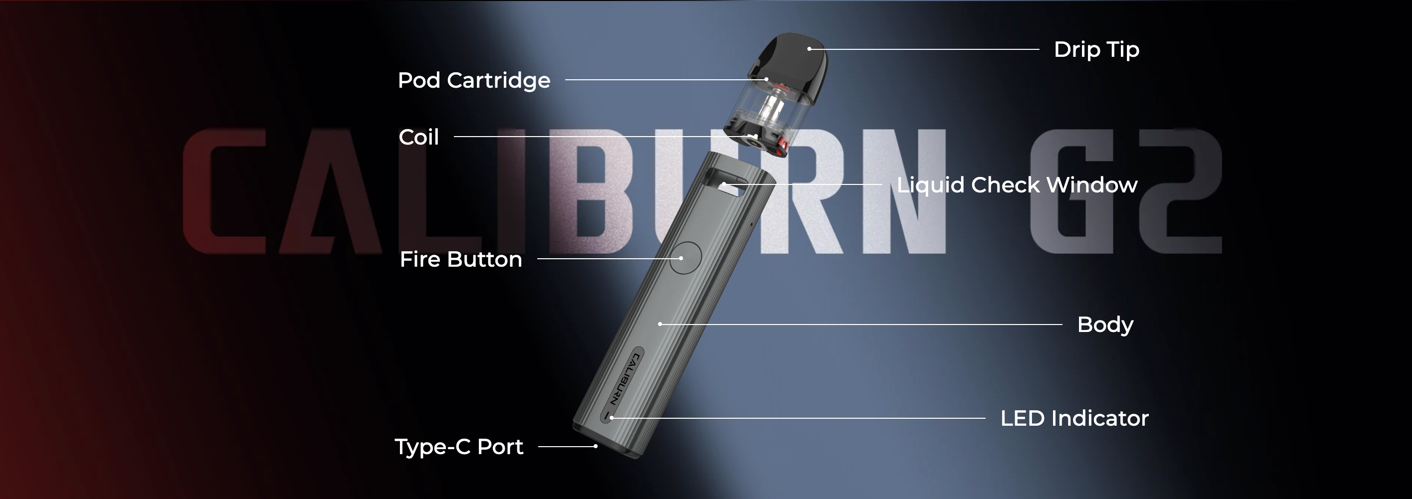 Uwell Caliburn G2 Pod, buharcıların cihazın bakmadan ne yaptığını bilmelerine yardımcı olmak için titreşim etkileşimi içerir. Uwell Caliburn G2 Pod Kit, yerleşik 750mAh pil ile çalışır ve nefes sensörü ile ya da düğme ile etkinleştirilen ateşlemeyi destekleyebilir. Caliburn G2, MTL ve kısıtlı DTL buhar sunmak için aşamalı hava akışı ayarına sahiptir. Uwell Caliburn G2, e-likit pencereli 2ml kartuş ile eşleştirilmiştir ve üst doldurma portundan rahatlıkla yeniden doldurulabilir. Uwell Caliburn G2 kartuşu, size orijinal tat ve saf lezzet sağlamak için Pro-FOCS lezzet ayarlama teknolojisini benimser. Caliburn G2, 1.0 Ohm coil ve 0.8 Ohm Caliburn G coil ile uyumludur.