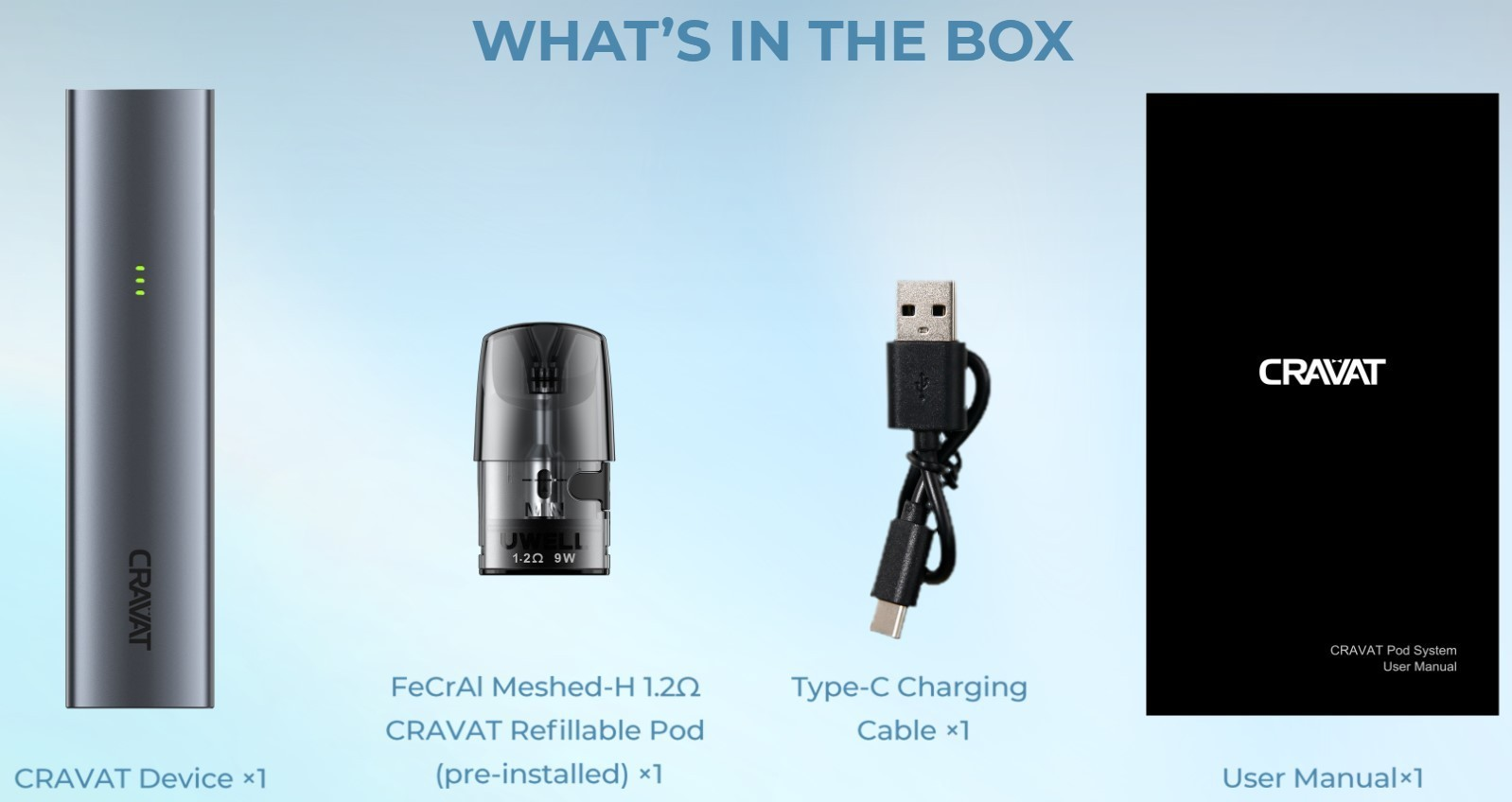 Uwell Cravat Pod Kit: 300mAh pil, 1.5ml tank, 1.2 Ohm bobinler. Kompakt, hafif ve harika tat. USB-C şarj, manyetik kartuşlar. Mükemmel elektronik sigara deneyimi.