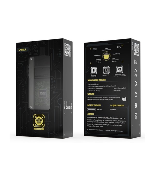• İşlevsellik: Uwell Crown B Pod Mod, nefes sensörü veya cihazın yan tarafındaki güç düğmesi ile kolayca çalıştırılabilir. Dahili yüksek teknoloji çip, kısa devre, düşük voltaj, fazla çalışma ve açık devre koruması gibi çok sayıda koruyucu özellik sunar.