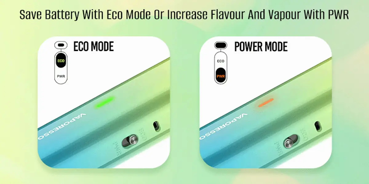 • PWR Mode & ECO Mode — isteğe göre daha yoğun buhar veya daha ekonomik kullanım