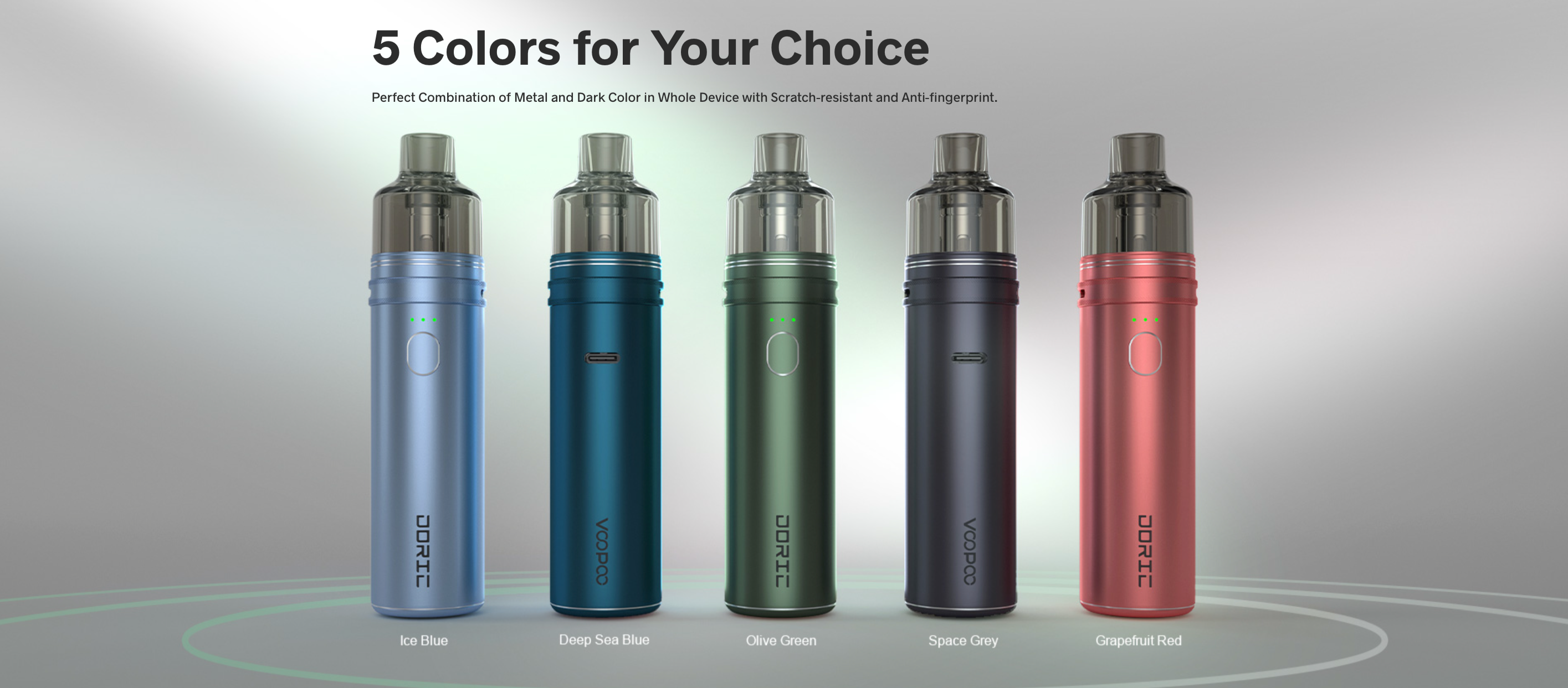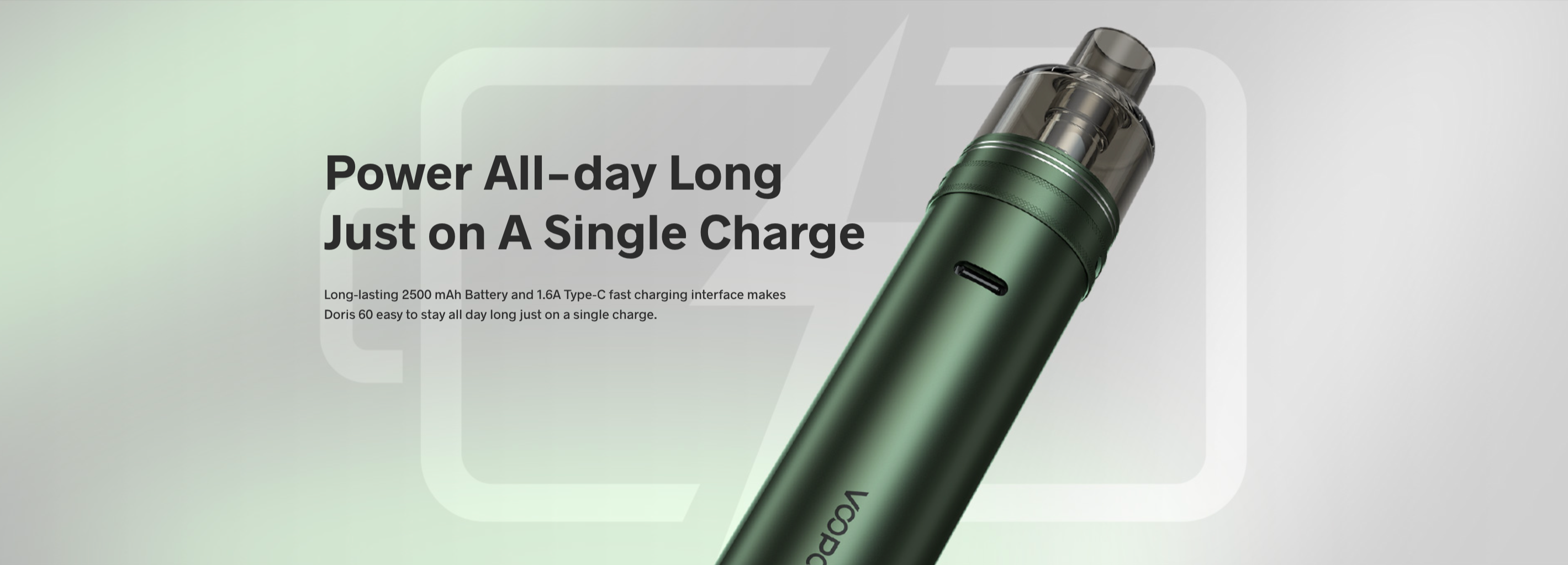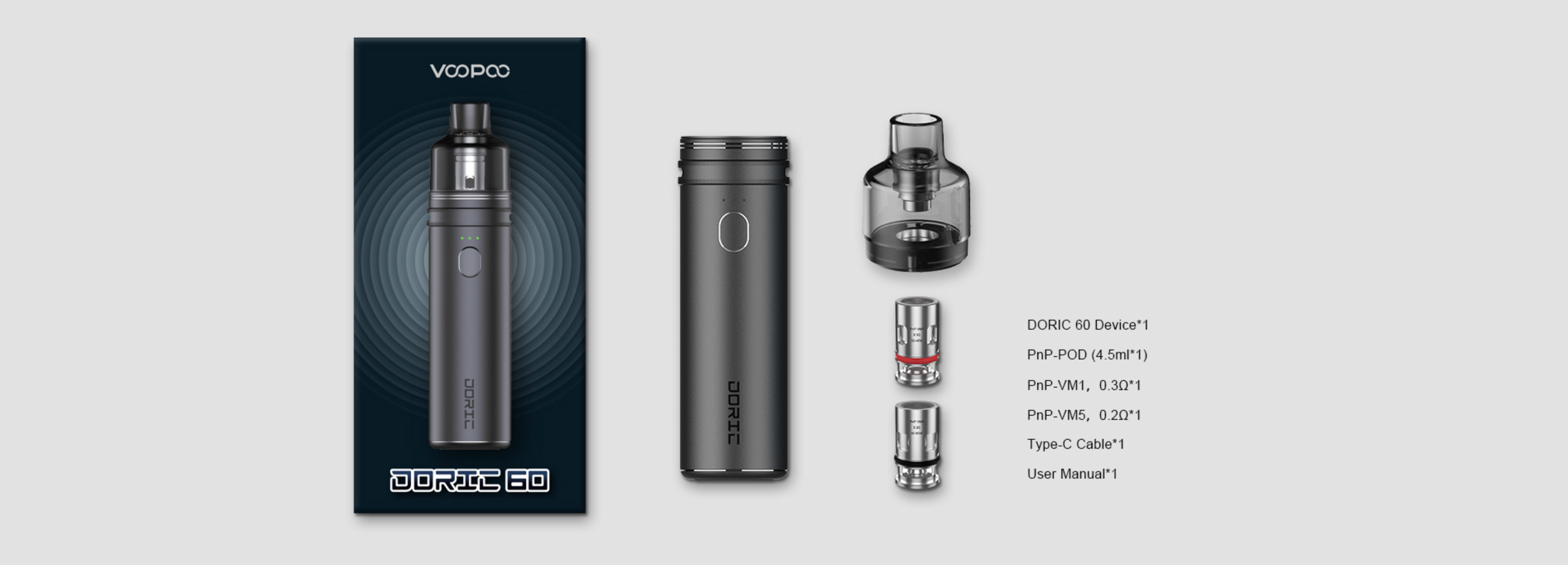 2500mAh dahili pil ve USB Type-C hızlı şarj özelliği ile donatılmıştır. 5-60W çıkış gücü sağlayan Voopoo Doric 60, GENE çipi sayesinde güvenilir bir performans sunar.