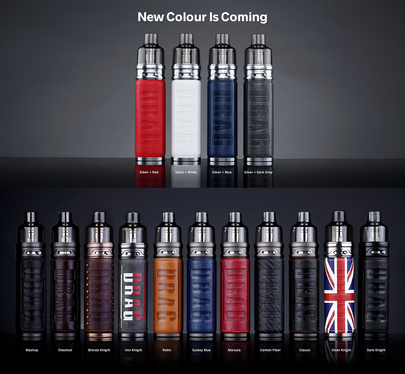 Voopoo Drag S Pod Mod60W’a kadar güç çıkışı sağlar. Ayrıca, deri ve metalin kusursuz birleşimi sayesinde hem dayanıklı hem de şık bir görünüm kazanmıştır.