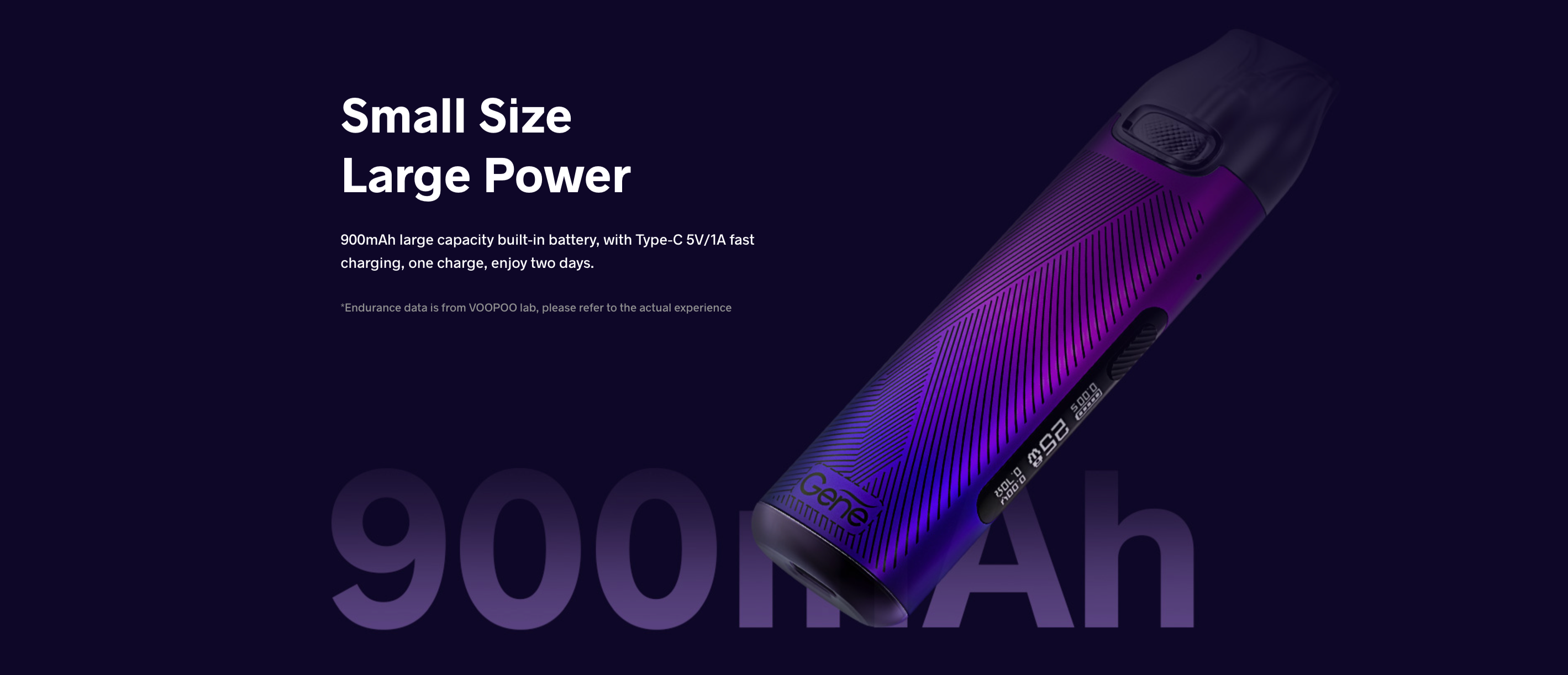 Voopoo Vinci Q Pod Mod, dahili 900mAh bataryası ile tüm gün boyunca kullanım sunar ve az bakım gerektiren bir yapıya sahiptir.
